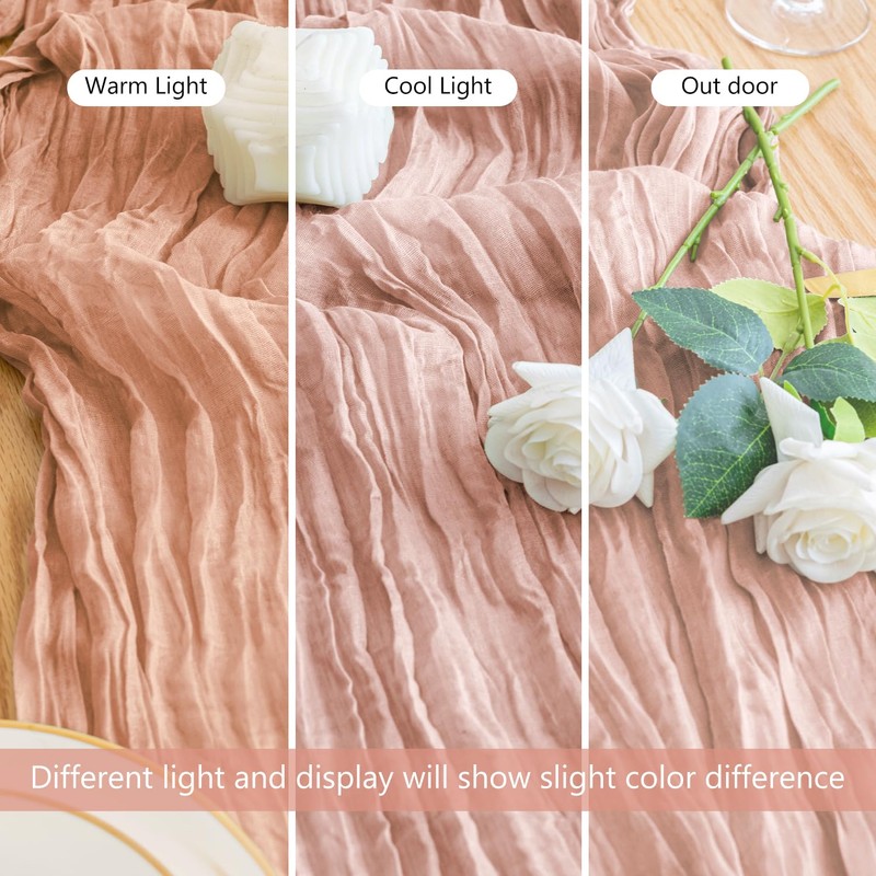 - 【Elegant Design】This romantic cheese cloth runner can be used as a decorative element for your dining table or party. It is an excellent addition to any event decoration, perfectly matched with flowers, candlesticks, and green plants, adding a touch of elegance to your overall decoration. Different colors and multiple quantities to choose from to match any event you want.