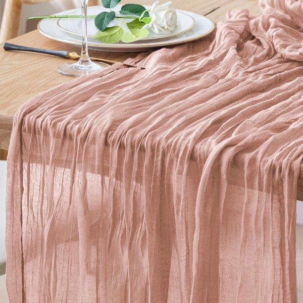Xiomot Table Runner Fall Cheesecloth 10FT Dusty Pink Boho Gauze Cheese Cloth Rustic Sheer Table Runners for ThanksgivingWedding Bridal Baby Shower Party Decoration