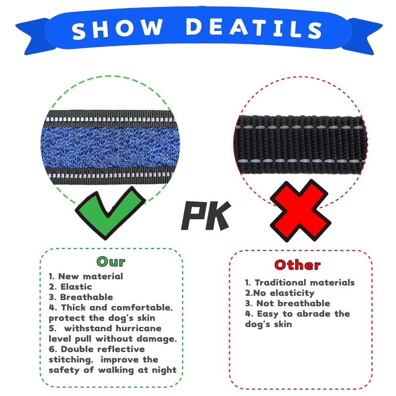 - Easy to Use : Xipebros dog harness let you complete control when you are walking or training your dog, Xipebros no pull dog harness fits easily around your dog’s chest and attaches to your leash by your pet’s shoulders, distributing pressure more evenly than a collar, and Eliminate the possibility of dog suffocation.