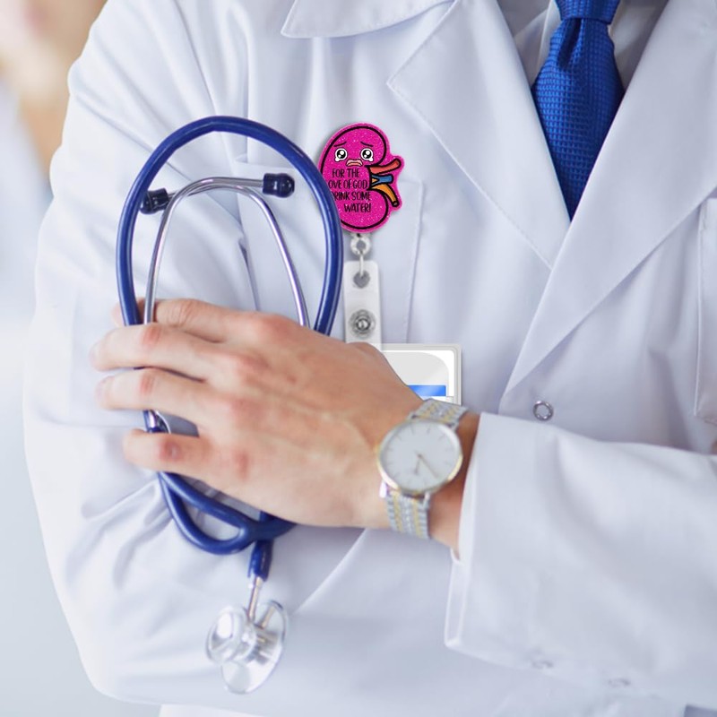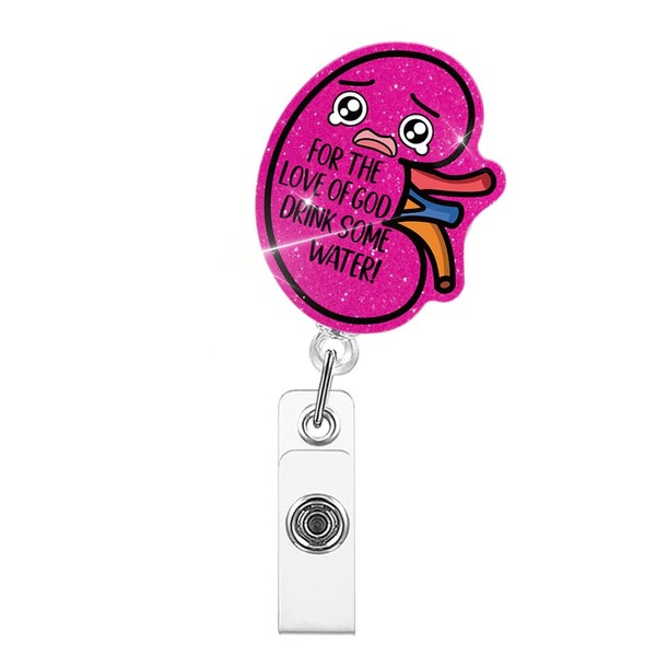 Xipromi for The Love of God Please Drink Some Water Badge Reels Retractable Glitter with Clip, Funny Urology Badge Holder for Urologist Nephrology Nurse Doctor Dialysis Technician Night Shift Nurse