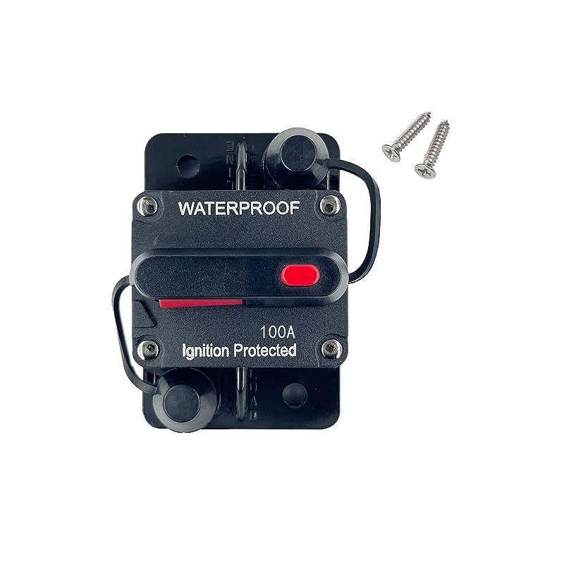 Features:Easy to operate with manual reset arm.good conductivity, high temperature resistance.Mount on Panel or FirewallStops Power Surges from Damaging Your AmpsSplash and dust proof Water proofNo need to keep replacing fuses anymore, simply reset breaker and you are ready to go.Protects Your Trolling Motor From Electrical DamageUnique Push Button Reset can also be used as a Kill SwitchApplication:Suitable for car audio/video system, Boat, trucks, buses, RV's, ATV Winches and marine and DC sound amplifier system overload protection.Specification:1. Size: 3.05in (L) x 1.97in (W) x 1.85in (H).2. Voltage: 12-48V DC3. Net weight: 3.1oz4. Operating temp: -32C to 82C (-25F to 180F).5. Material: Plastic and Metal6. Ampere range:300A7. modes: Close/OffPackage included:1PCx 100A Waterproof Circuit Breaker2 x Self Tapping Screws