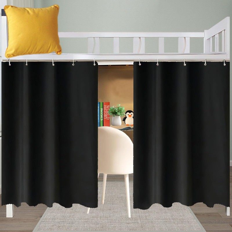 XiRiDa Blackout Bunk Bed Curtains Students Dorm Room Privacy Canopy, 2 Panels Black