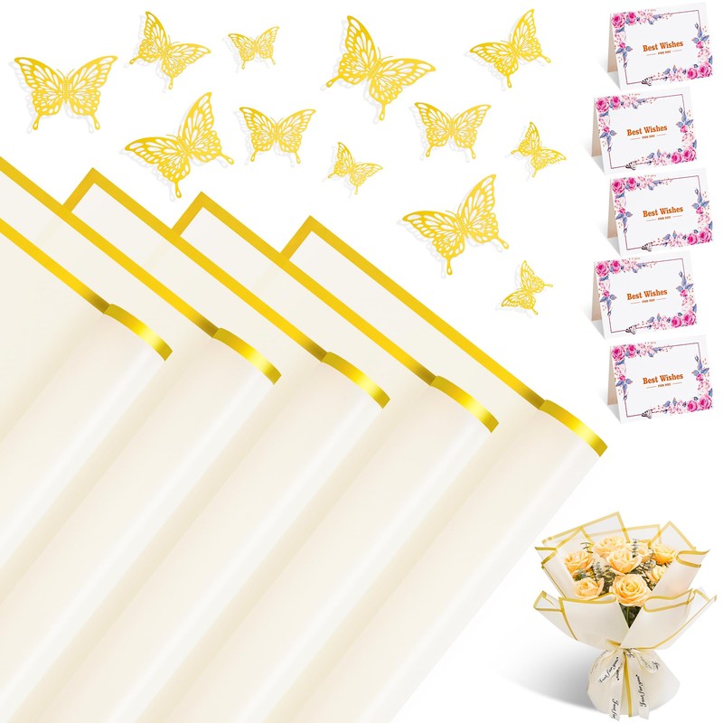 - 🌸【Florist Wrapping Paper Set】You will receive 20 sheets flower wrapping paper, 12 pcs 3D gold butterfly, and 5 pcs greeting cards, The rich quantity and exquisite combination can meet your daily flower packaging or DIY decoration needs.