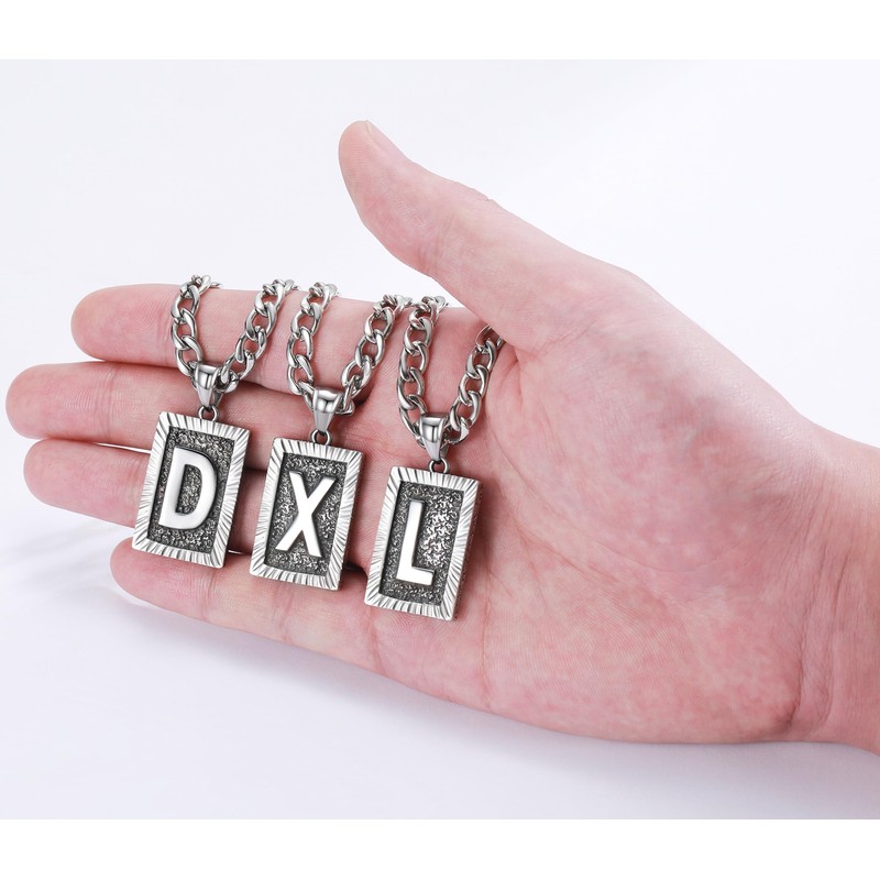 XIRUVE Men's Women's Stainless Steel Letter A to Z Square Retro Style Pendant Initial Necklace with 6 mm Wide Curb Chain Length Adjustable, Stainless Steel, No Gemstone