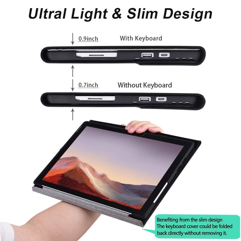 - Material: TPU Waterproof Polyester Shell Cover, Compatible with Type Cover Keyboard, Slim, Lightweight, High Protective, Soft Touch, Dirt resist, non-slip, Durable.