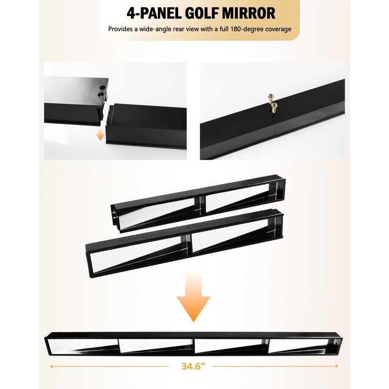 - 4-Panel Golf Mirror - Provides a wide-angle rear view with a full 180-degree coverage, eliminating blind spots for complete visibility behind your cart