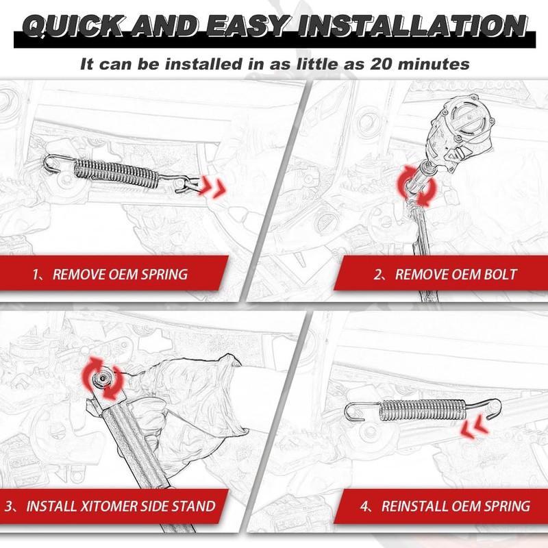 • Material: The Xitomer adjustable side stand is made of steel, which is much stronger than alloy.