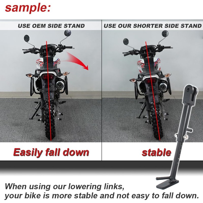 • Endurable: Motorbike side bracket are coated in black powder, not easy to rust, wear, high strength, corrosion resistance, Endurable.