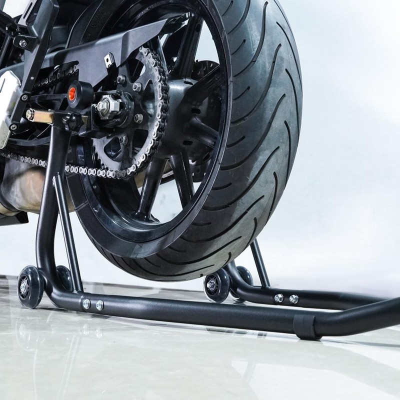 - Quick, Effortless Lifting: The motorcycle rear stand is designed for rapid and lifting of your motorcycle's front tire, enabling you to perform maintenance, repairs, or cleaning with ease. No more struggling to prop up your bike - simply use this stand to effortlessly get the job done.