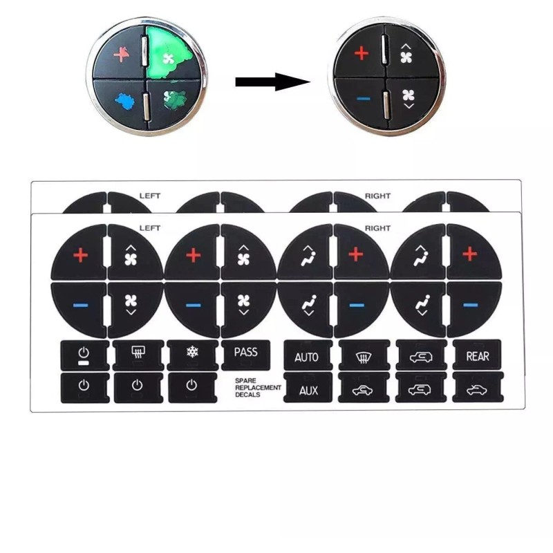 - Items Included: 2pcs A/C Center Console Button Repair Sticker