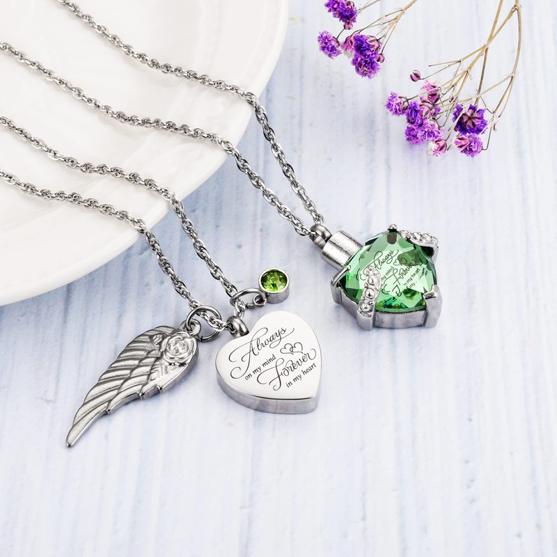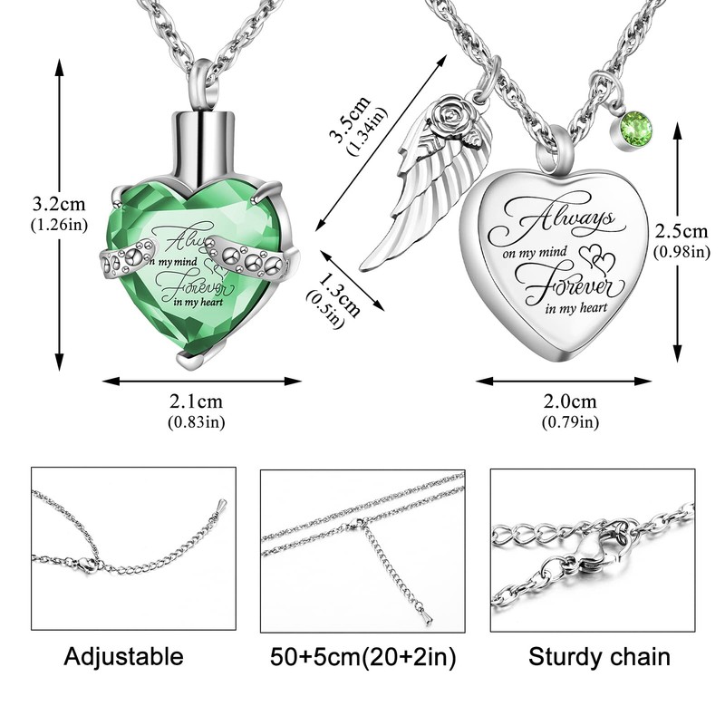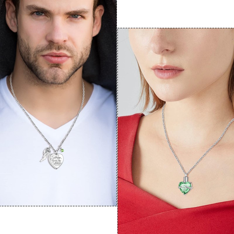 XIUDA 2 Pieces Urn Necklace for Ashes, Heart Cremation Jewelry with Birthstone-Always on My Mind, Forever in My Heart