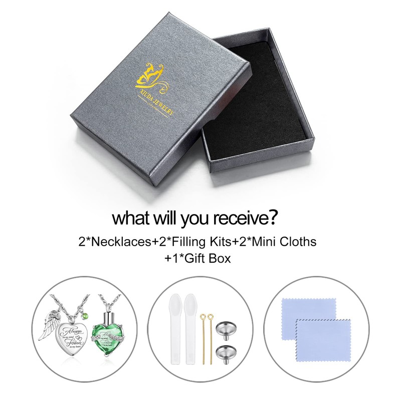 • Exquisite Packaging- 2*Urn Jewelry Necklaces; 2*filling kits; all in a beautiful gift box. A perfect gift for keeping memories always & forever