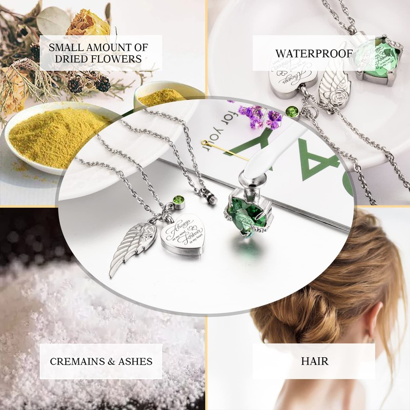 • Urn Necklaces Set- Comes with a set of 2 memorial necklaces, perfect for those who are experiencing loss, will be a timeless and attractive gift