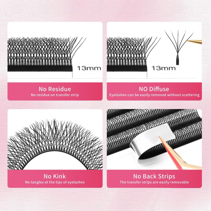 - Double Tips 5D W Lash: It has 10 lashes bonded together which is very simple to create fans when grabbing with tweezers, no any skills needed. Get a thick cluster instantly.