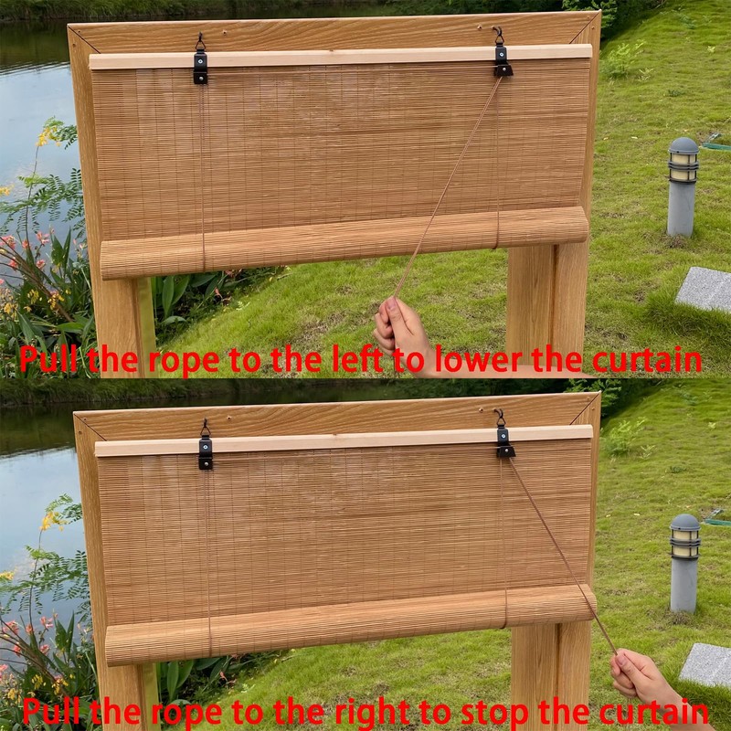 - Made of carefully selected bamboo. Easily installed in minutes with all necessary hardware included. It can be used indoor or outdoor but DO NOT expose to rainwater. Smoothly roll up or down to control sun light and wind in your room