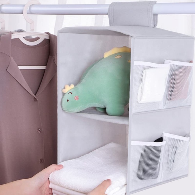 1. These fabric hanging shelves are helpful in storing and organising your wardrobe. Say goodbye to messy closet and keep everything in order.