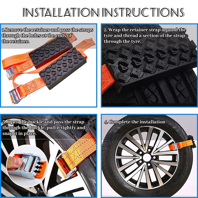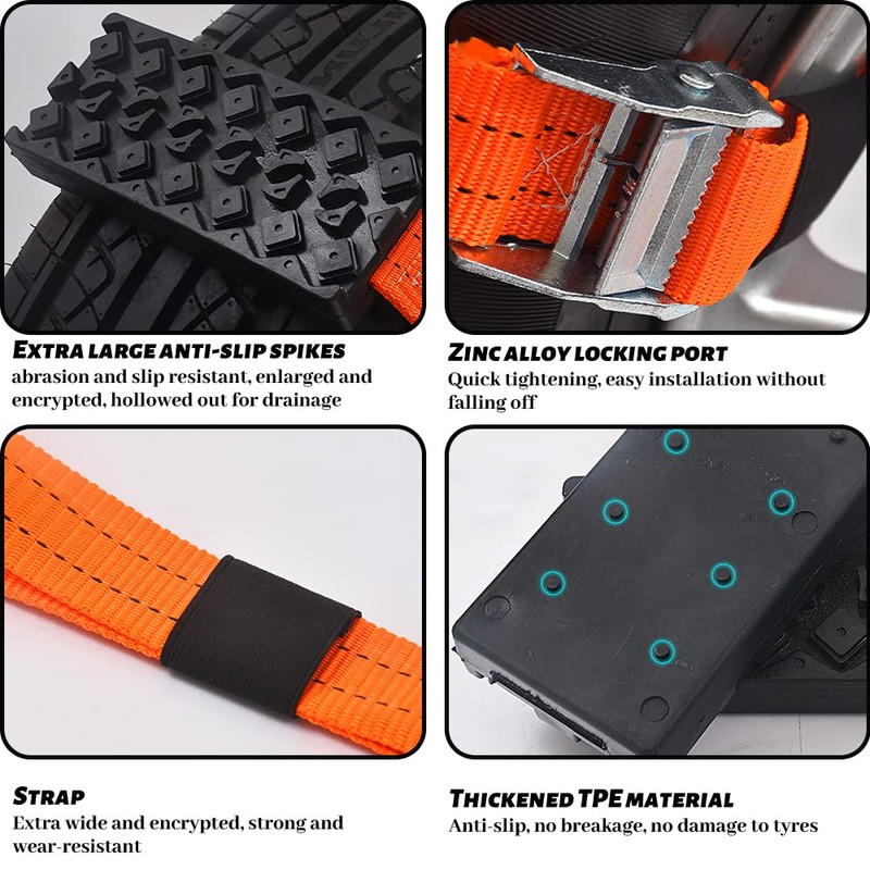 - Practical: the car anti-snow chain works well, whether you get stuck or crawling on sand, mud or snow. The special design ensures a good grip and does not damage the tyres or the road surface.