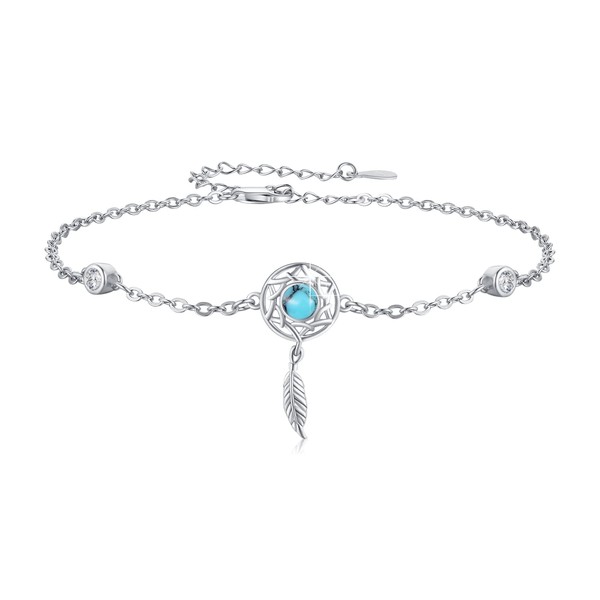 XIXLES Dream Catcher Bracelet 925 Sterling Silver Dreamcatcher Turquoise Bracelet for Women Dreamcatcher Bracelets Link Chain Feather Bracelets Adjustable Turquoise Dream Catcher Jewellery Gifts