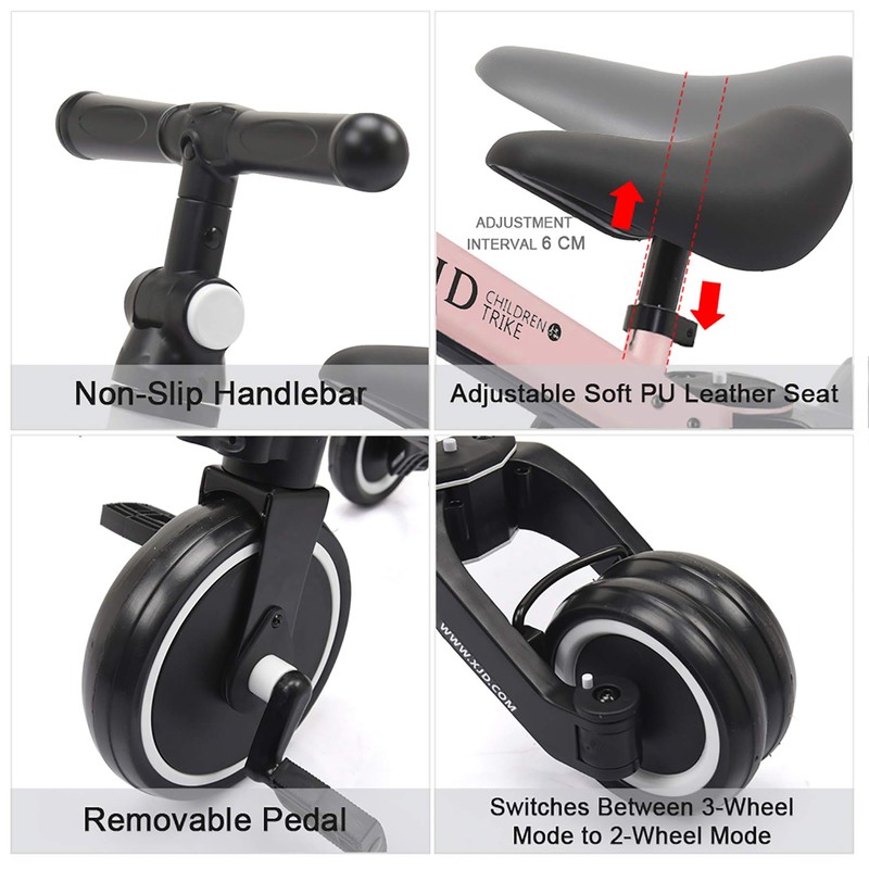 XJD 3 in 1 Kids Tricycles for 10 Month to 3 Years Old Kids Trike Toddler Bike Boys Girls Trikes for Toddler Tricycles Baby Bike Infant Trike with Adjustable Seat Height and Removable Pedal (Pink)