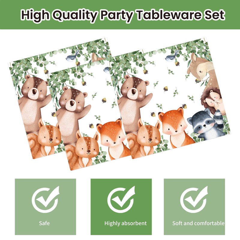 - 【Premium Quality】 Made from high-quality, eco-friendly paper, these plates and napkins are sturdy, odor-free, and resistant to heat and oil. The vibrant, fade-resistant prints stay bright, making your woodland-themed baby shower visually stunning while keeping cleanup hassle-free!