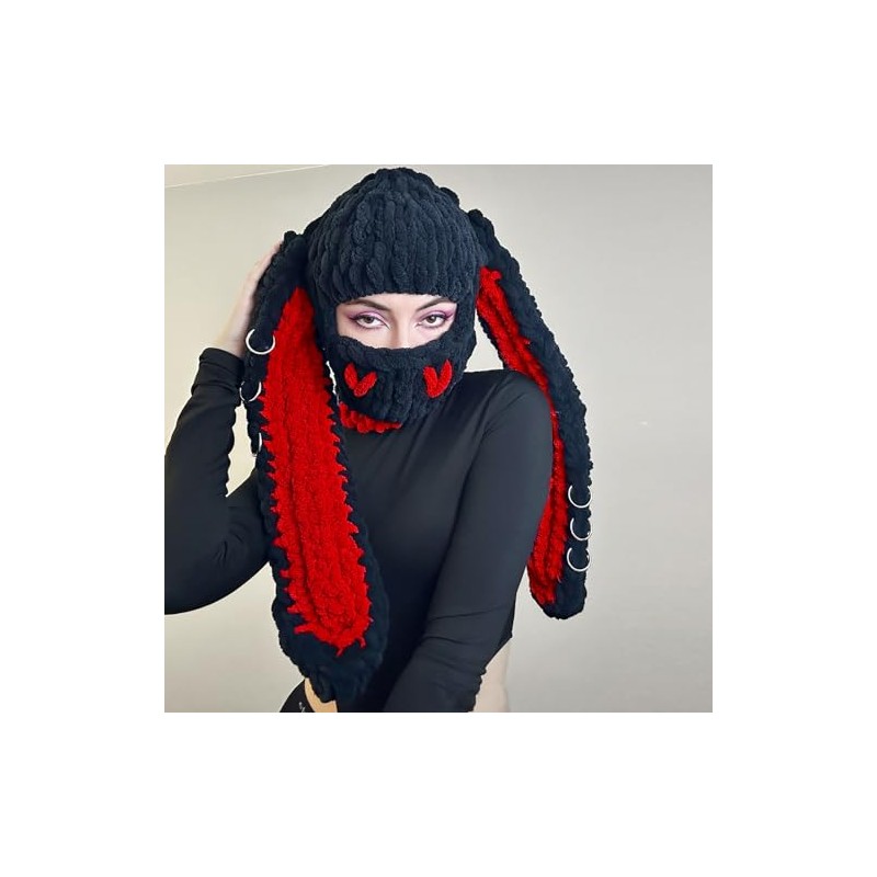 - Features: Mask-style bunny hat, with cute bunny ears knitted in different colors plush, the face mask is designed with two knitted hearts, our cute big-eared bunny hat will add more fun to your life!