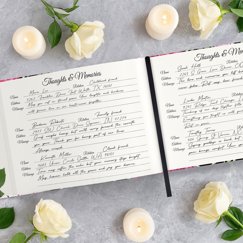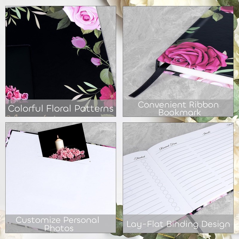 - Thoughtful Functional Details: A black satin ribbon bookmark keeps the signing page readily accessible during services. Combined with the elegant patterned cover, it maintains dignity while simplifying use for guests.