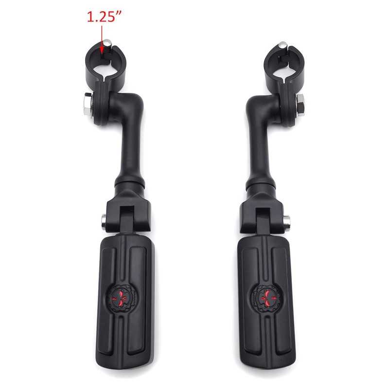 - Offsets pegs 4.5" from engine guard,Offset design allows installation on the side or top of the engine guard