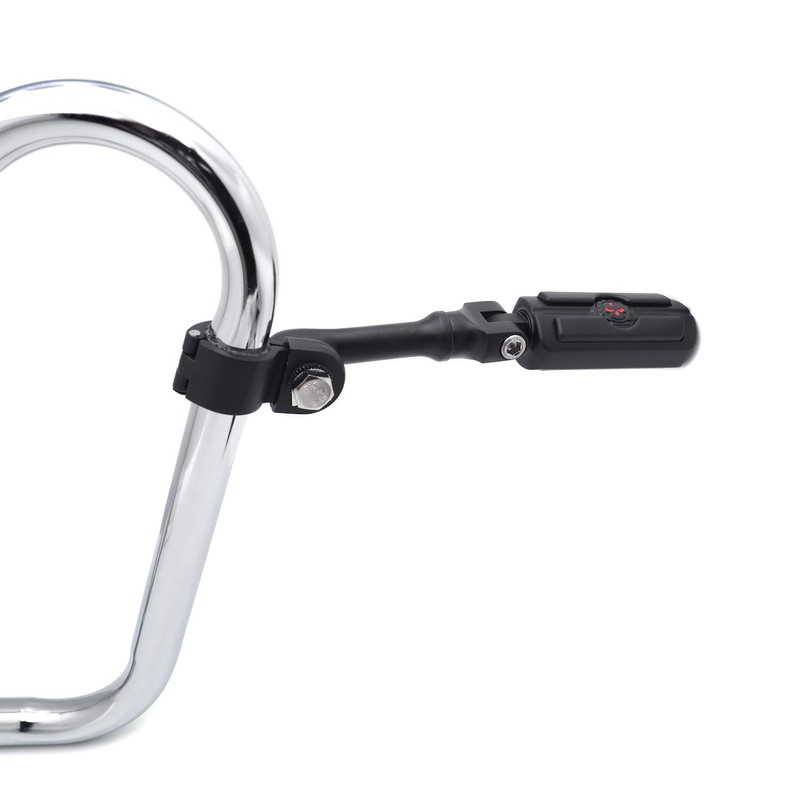 Clamp securely grips the engine guard, and the locking design keeps the peg at the desired angle