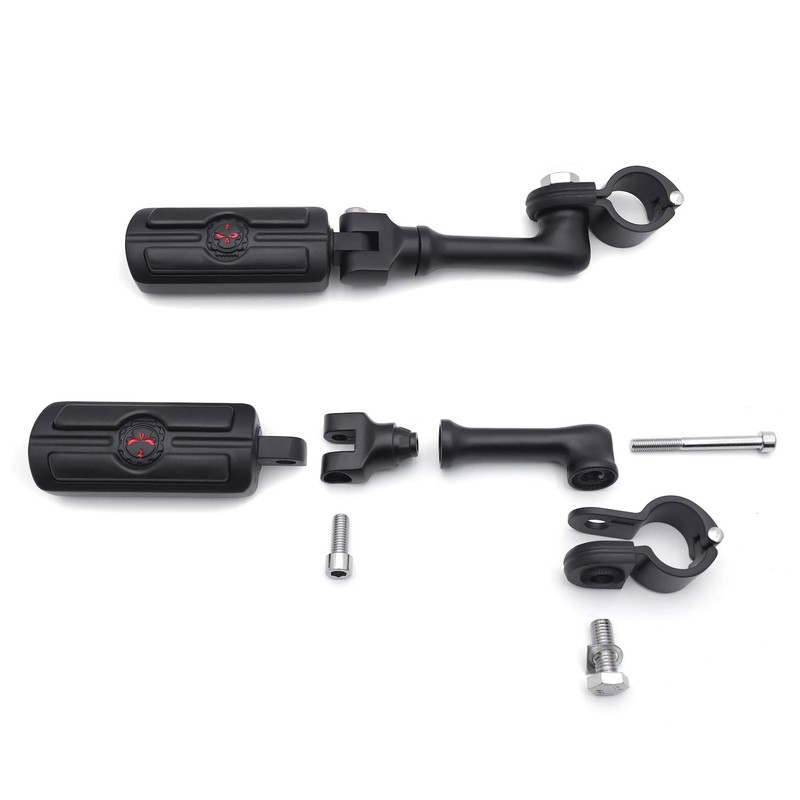 XKMT-Black Long Adjustable Highway Mounting Kit Skull Zombie Footrest Compatible With V-STAR Roadstar Boulevard 1-1/4 inch (1.25") Front Engine Guard Frame Tube [B01AVHPBEG]