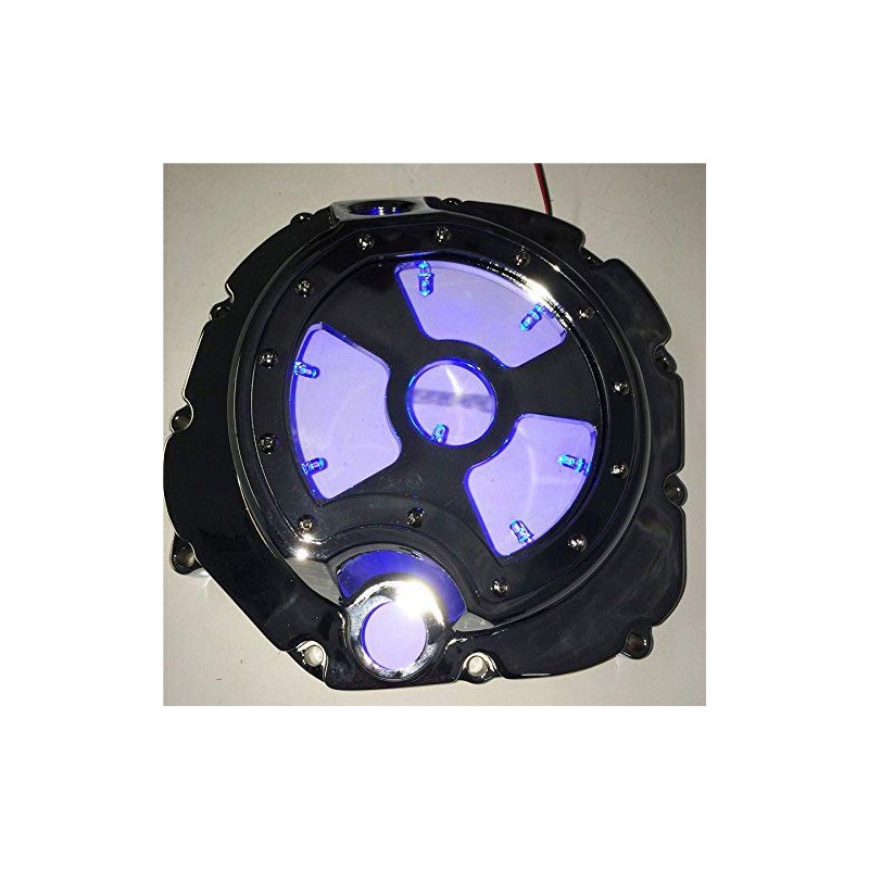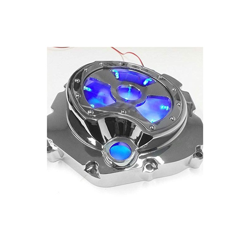 XKMT-Blue LED Engine Clutch Cover See Through Compatible With Kawasaki Zx14R Zzr1400 2006-2013 Chromed Right side Motorbike [B00YWBZTQI]