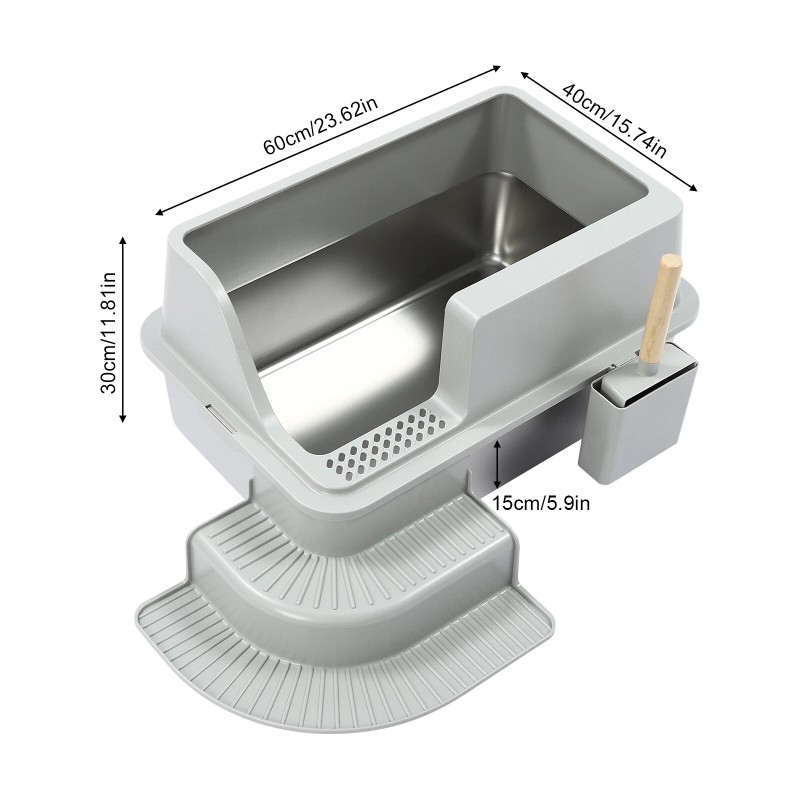 Xl Stainless Steel Cat Litter Box With Lid Extra Large Litter Pan With High Side