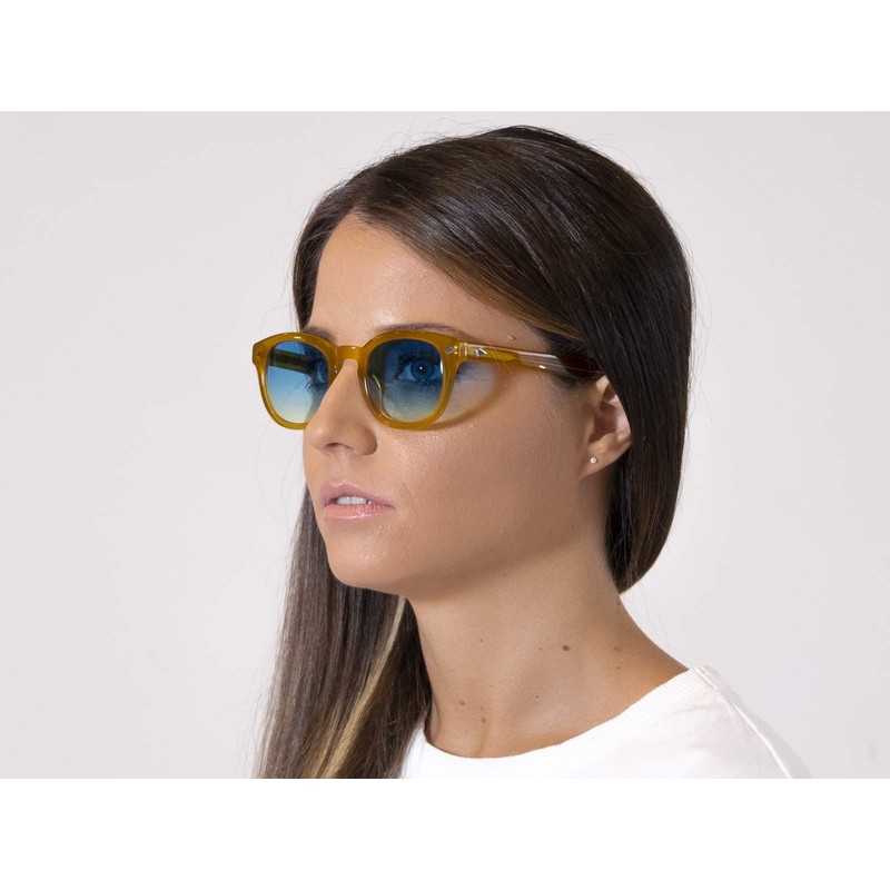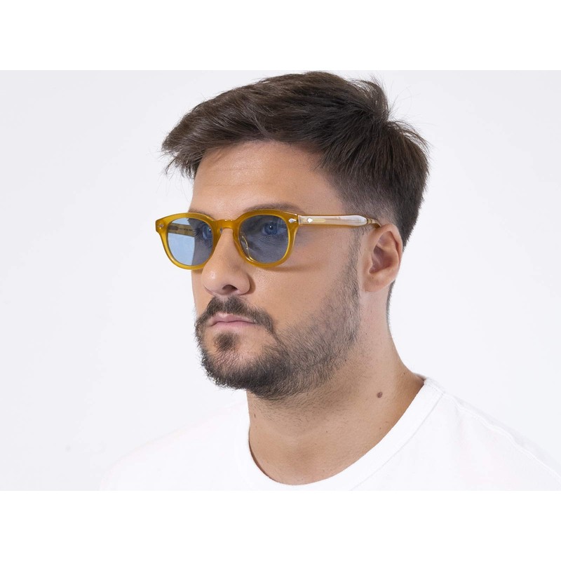 XLAB Unisex Moscot Style Sunglasses 8004, Yellow/Sky Blue