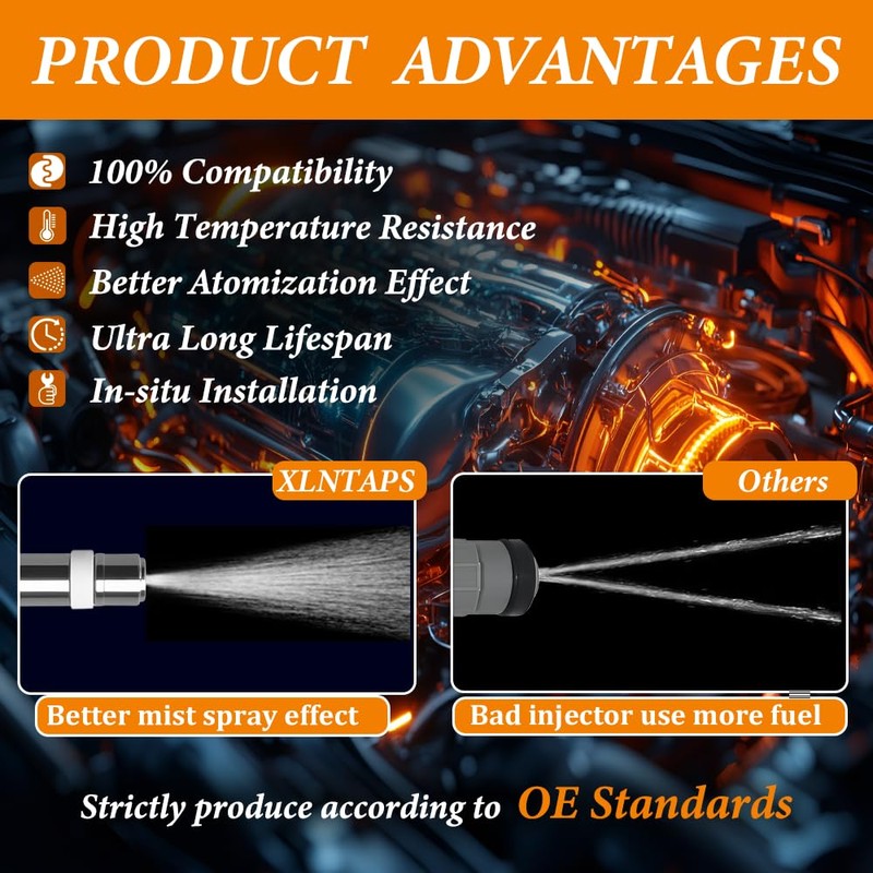 • 【PREMIUM MATERIAL】- The XLNTAPS fuel injectors is manufactured strictly in accordance with OE specifications and are made of composite materials, which can prevent corrosion of the fuel control body and extend its service life. High temperature viton O-rings can extend the sealing time of fuel injectors under extreme high temperature conditions.