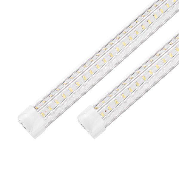 - 1. V-Shaped Design: The 4ft LED shop lights feature a scientific V-shaped design. Equipped with double row LED chips and a 270-degree emitting angle, these lights ensure higher lighting efficiency and a wider lighting range, making them ideal for use in garage, warehouse, and workbench settings.