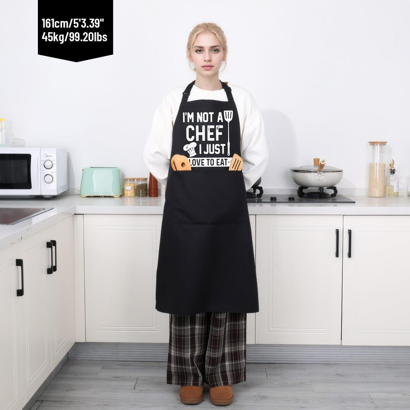- FUNNY PATTERNS DESIGN - Funny patterns, and a cooking apron with the saying "I‘M Not A Chef, I Just Like To Eat", increase the joy of cooking