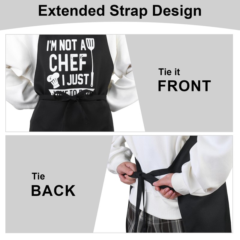 XLSXEXCL Funny Cooking Aprons for Men, I‘M Not A Chef, I Just Like To Eat, Aprons for Cooking Kitchen Grilling Aprons with Two Pockets, Grill Apron Adjustable Chef Apron, Gift for Dad Mom