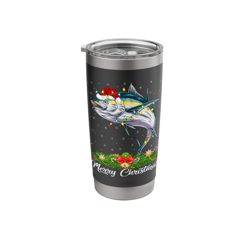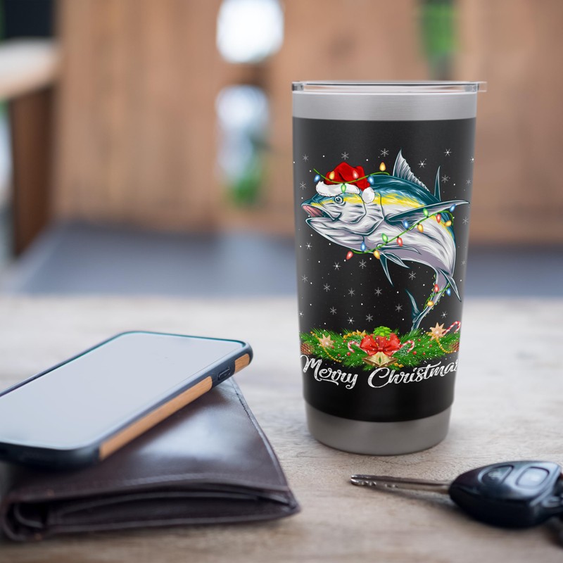 Xmas Lighting Decor Santa Hat Tuna Fish Christmas Stainless Steel Insulated Tumbler