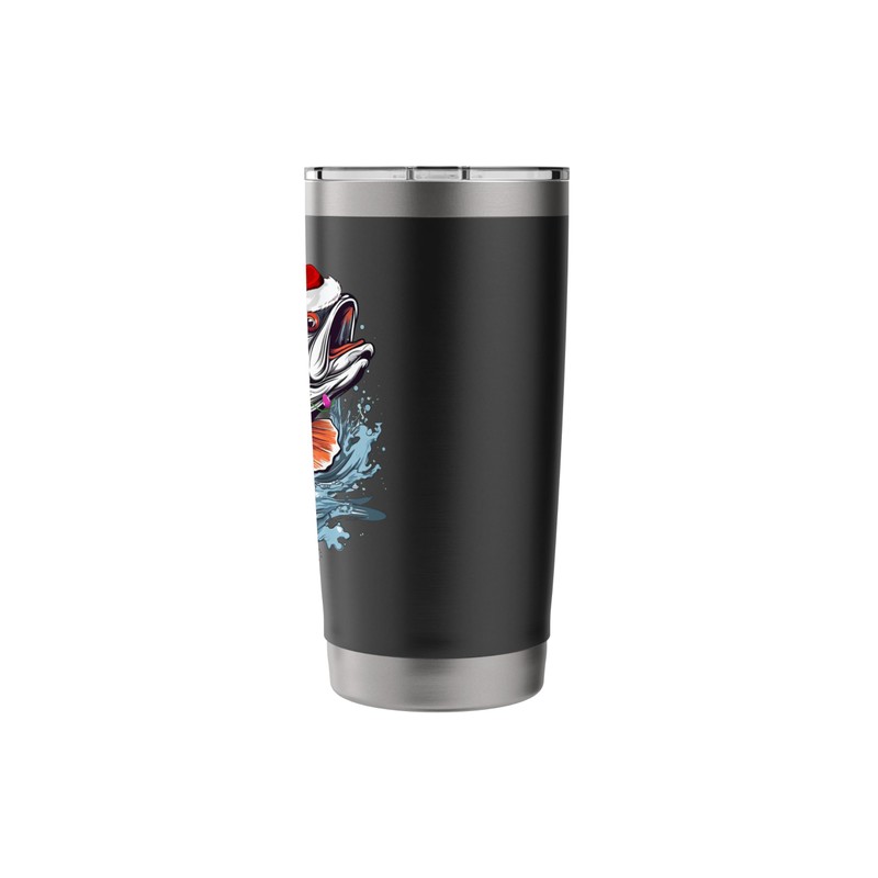 Xmas Lights Santa Hat Bass Fish Fishing Christmas Stainless Steel Insulated Tumbler