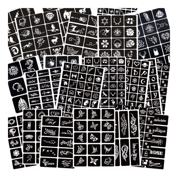 1) Juego de plantillas de tatuaje perfecto variedad de diseños incluye 400 patrones diferentes. Mariposa, palabras, número, letra, dragón, animales, escorpión, ciervo, araña, flores, corazón, rosas, henna y Egipto estilo patrones en 22 páginas tamaño A4.; 2) Tamaño del patrón: 0.9 x 1.0 in; 1.2 x 1.2 in; 2.2 x 1.2 in; 2.4 x 2.0 in; 3.5 x 2.0 in; 2.3 x 2.6 in; 5.3 x 1.7 in; diferentes tamaños se pueden aplicar a cualquier parte del cuerpo.; 3) Pegatinas de PVC de 2 capas de alta calidad, duraderas, seguras y divertidas para todas las edades. Los patrones incluidos en el paquete pueden ser utilizados por familias para padres, madres y niños, pueden disfrutar del tiempo hecho a mano juntos.; 4) Perfecto para tatuajes con purpurina, tatuajes de henna, crayones de pintura facial, pinceles de pintura facial, arte corporal, tinta de tatuaje temporal para niños y adultos. Adecuado para la mayoría de ocasiones como regalos de cumpleaños, graduaciones, regalos de fiesta, eventos de trabajo, bodas, conciertos, la piscina, la playa, etc; 5) Usar solo en piel seca y limpia. Diseño y tamaño que se muestra en la imagen. Fabricado solo por Mehndi. Método de uso