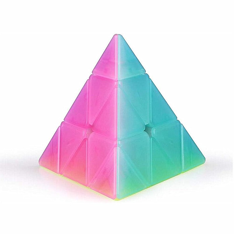 - Unleash your speedcubing style with the QY Toys Jelly Pyramid 3x3 Cube! This eye-catching stickerless triangle speed cube features a stunning translucent jelly color design, making it stand out with a vibrant, glossy finish. With a large 95mm size, it offers a comfortable grip and smooth turning for both casual solvers and speedcubers. The 3x3x3 pyramid shape adds a fun challenge while maintaining the familiarity of a classic cube. Perfect for collectors and cubers who love unique, high-performance puzzles!