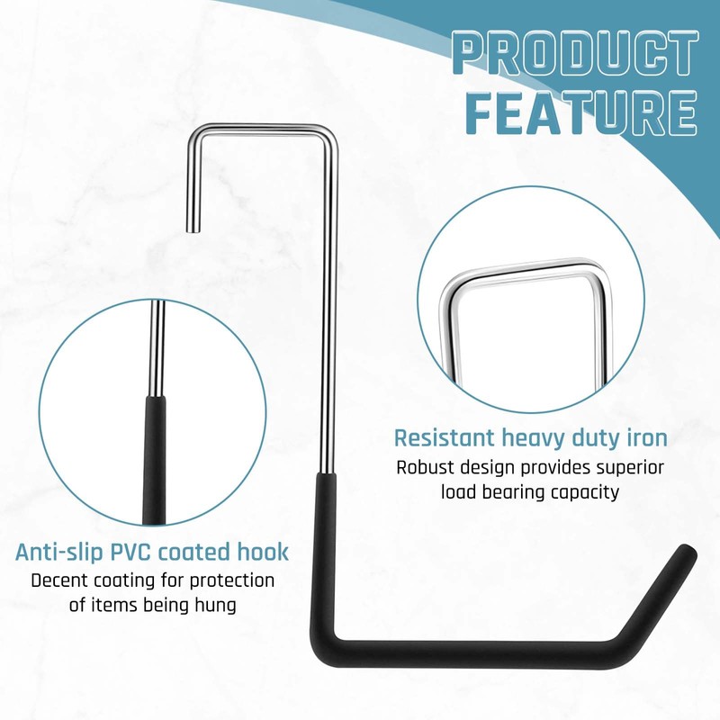 • Secure hold: each garage hook is equipped with a non-slip rubber coating that securely grips and protects your valuable equipment. Robust rafter hooks perfect for wall hooks garage and stable hold.