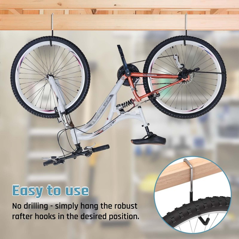 • Versatile hooks for indoor and outdoor use: Garage bike hooks are perfect for hanging equipment and items such as artificial flower basket, garden tools, bicycle, ladders, heavy garage items, sports equipment.
