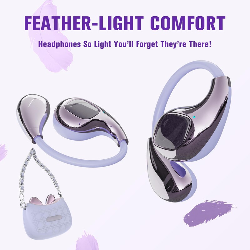 - 【Open-Ear Comfort Design】Experience all-day comfort with our innovative open-ear earbuds that rest gently over your ear cartilage. Perfect blend of ergonomic over-the-ear headphones design and featherlight 9g build keeps you aware of surroundings while enjoying music