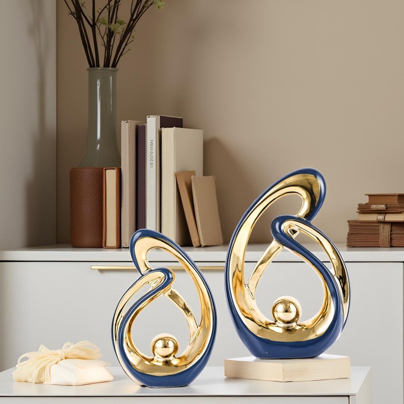 - 【Elegant art decoration】When light shines on the statue, its surface reflects a unique effect, adding dynamism and charm to your space. Whether in the living room, bedroom, study, or office, this Blue and Gold ceramic abstract sculpture becomes the captivating focal point. Its exquisite design and colors make it an irresistible piece of art and decor, instantly elevating your space with an elegant fusion of artistry.
