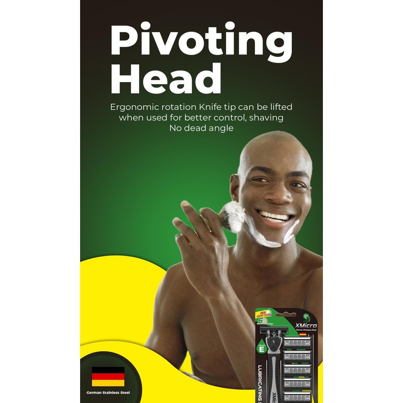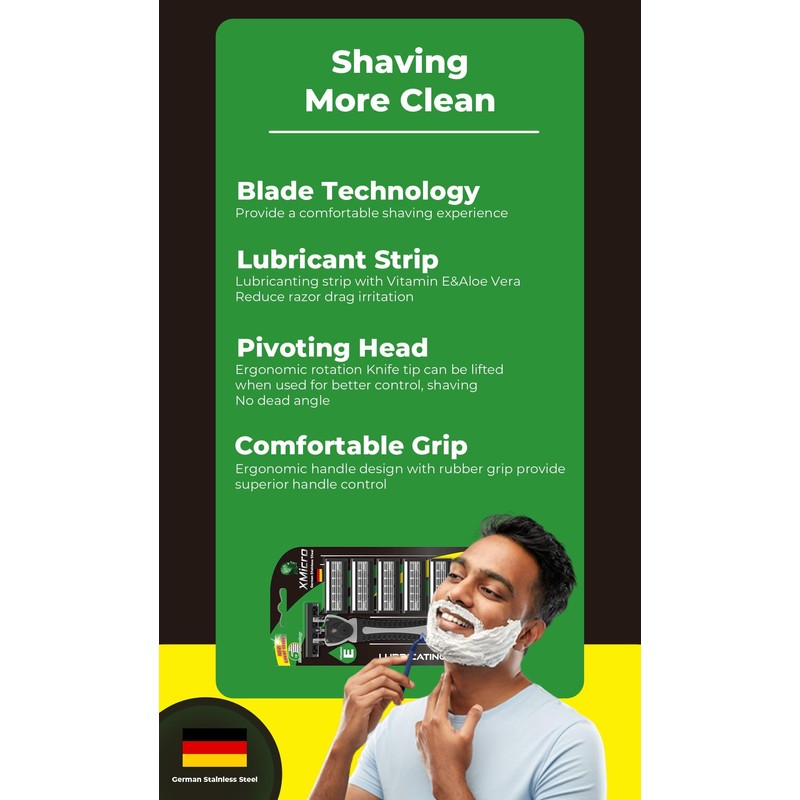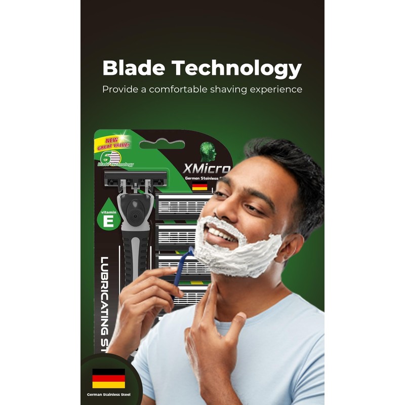 XMicro XMicro? Razors for Men, 1 Razor, 7 Blade Refills with German Stainless Steel, Lubricated with Vitamin E, Aloe for Smooth Shave, Shields Against Irritation, Light Weight Version X Men
