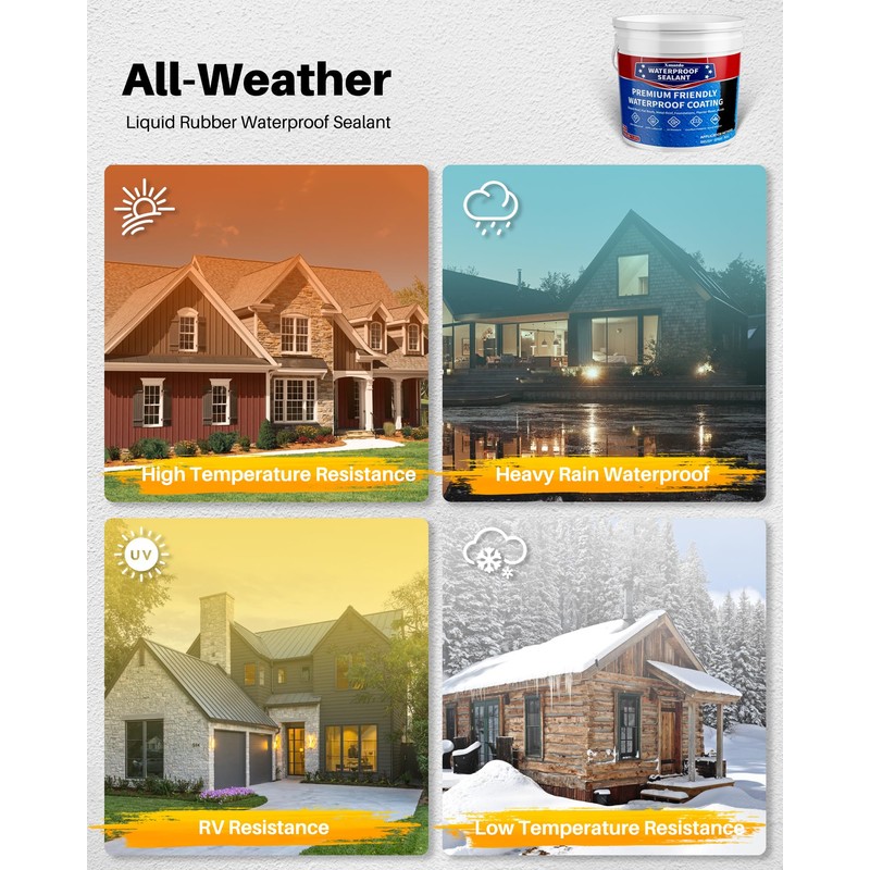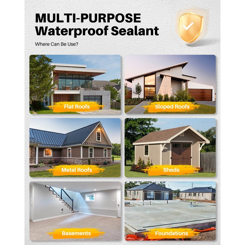 - Exceptional Flexibility & Durability: The liquid waterproof sealant boasts over 980% elongation, allowing it to flexibly adapt to surface movements and prevent cracking or peeling, and is UV Stable stopping the sun from degrading the product, ensuring long-term waterproof performance for both indoor and outdoor use