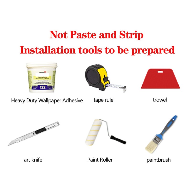 - ⚠️Note: The (3D)wallpaper effect is all flat, not a bumpy picture, it is also not paste peeling, no overlap when installing, you need to prepare your own heavy duty wallpaper adhesive and installation tools, in addition we can customize any size you want.