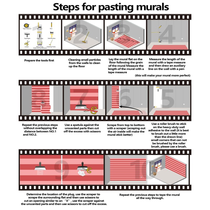 • ⚠️Note: The (3D)wallpaper effect is all flat, not a bumpy picture, it is also not paste peeling, no overlap when installing, you need to prepare your own heavy duty wallpaper adhesive and installation tools, in addition we can customize any size you want.
