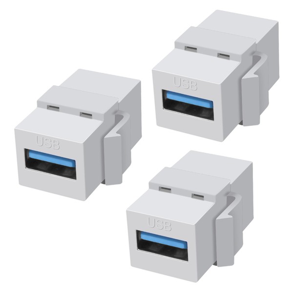 XMSJSIY USB 3.0 Keystone Jack Adds Adapter 5Gbps USB 3.0 A Female to Female Coupler Connector Snap-in Socket for Wall Plate Output Panel - 3 Pieces