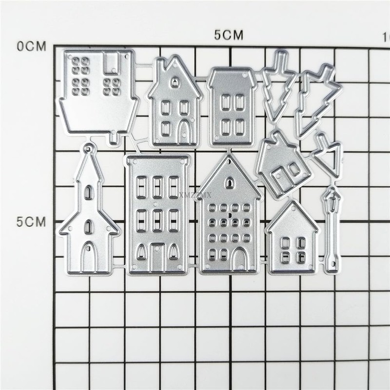 XMZZMX Houses and Trees Metal Cutting Dies for Card Making, Paper Embossing Die Cuts Kit Templates Supplies, Photo Frame Album DIY Scrapbooking Stencils Sets